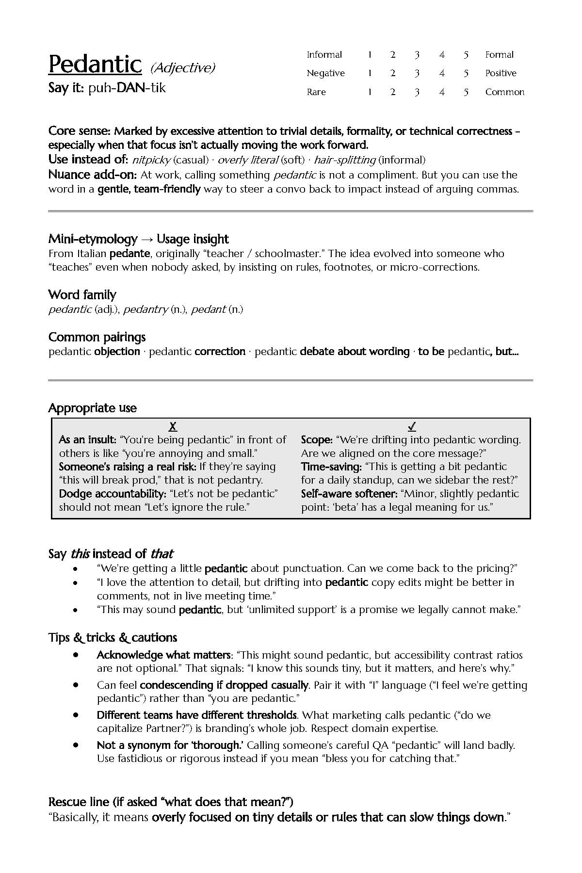 Every entry is designed to move a word from “I’ve seen that before” to “I know exactly when to use this.” -